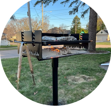 Our steel grills are built with quality materials that provide unmatched integrity. All of our grill boxes are built from 3/16" thick ASTM A36 American plate steel. Our frames our built from 2"x2" square tubing. Any round stock you see such as our grill handles, santa maria grills axles, and of course our grill slats are all solid bar stock! The only hollow round profiles we use is on our "Park Style" pedestal supports, and even then, it's Schedule 40 pipe (1/4" wall thickness). Our custom grills grates are framed with 1" square tubing. These grills are heavy, but we will get them loaded into your vehicle or delivered to site where they are sure to last as long as you'd like.